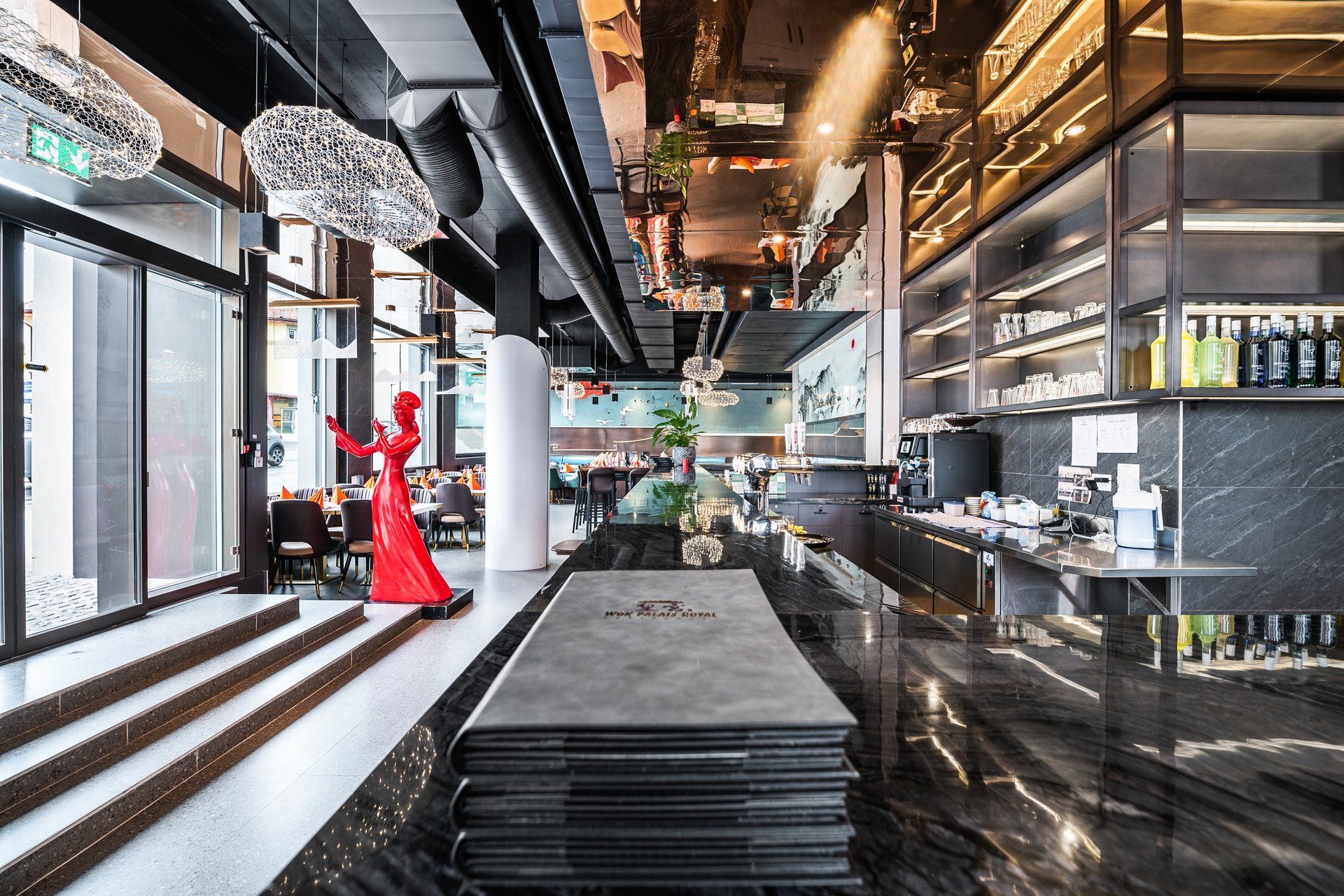 Découvrez les salles et espaces richement décorés du Wok Palais Royal à Bulle en images et salivez à l'avance devant nos plats et buffets préparés avec goût, rigueur et passion. Naviguez dans notre établissement au moyen de la visite virtuelle 360°, idéale pour se familiariser avec les lieux !